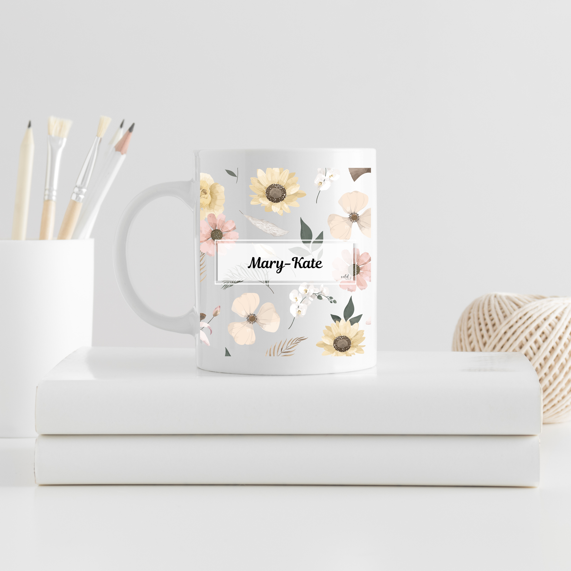 Personalised Teacher Mug with Pastel Green Pink White Florals | Custom Ceramic Gift